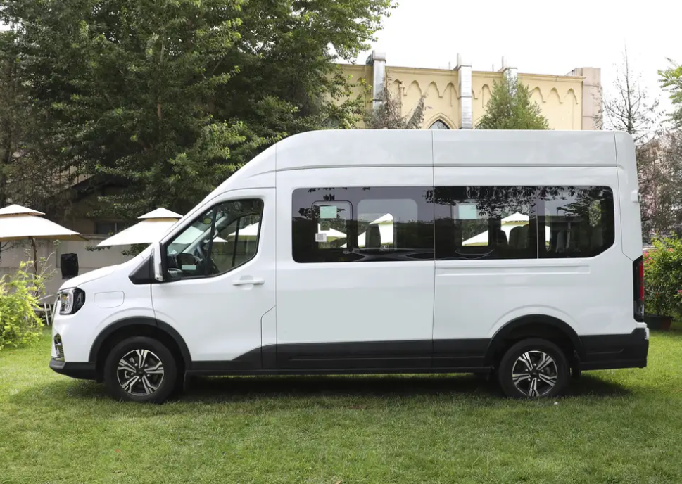 外观上,虽暂未拍摄到新车实车图,但预计延续现款2024款设计风格。现款采用封闭式前脸,与新能源身份呼应,简洁又具科技感。前灯组内部C字形日间行车灯搭配贯穿式LED灯带,点亮后辨识度极高,为车辆增添独特魅力,在车流中轻松脱颖而出。侧面线条简洁流畅,勾勒出硬朗大气的车身轮廓,长轴高顶设计让整车更显魁梧,也为车内空间提供保障。新车长宽高分别为6703/2164/2720毫米,轴距3750毫米 ,相比此前发售的顶配版本,长度增加705毫米,宽度增加96毫米,高度和轴距不变,更大尺寸带来更宽敞内部空间。车尾部分,参考此前配置版本,尾灯纵置排列并采用LED光源,照明效果出色又时尚。尾门对开门设计方便乘客上下车和货物装卸,顶部装配LED贯穿式灯带,集成高位刹车灯功能,不仅提升安全性,也使车尾更具层次感和科技感。